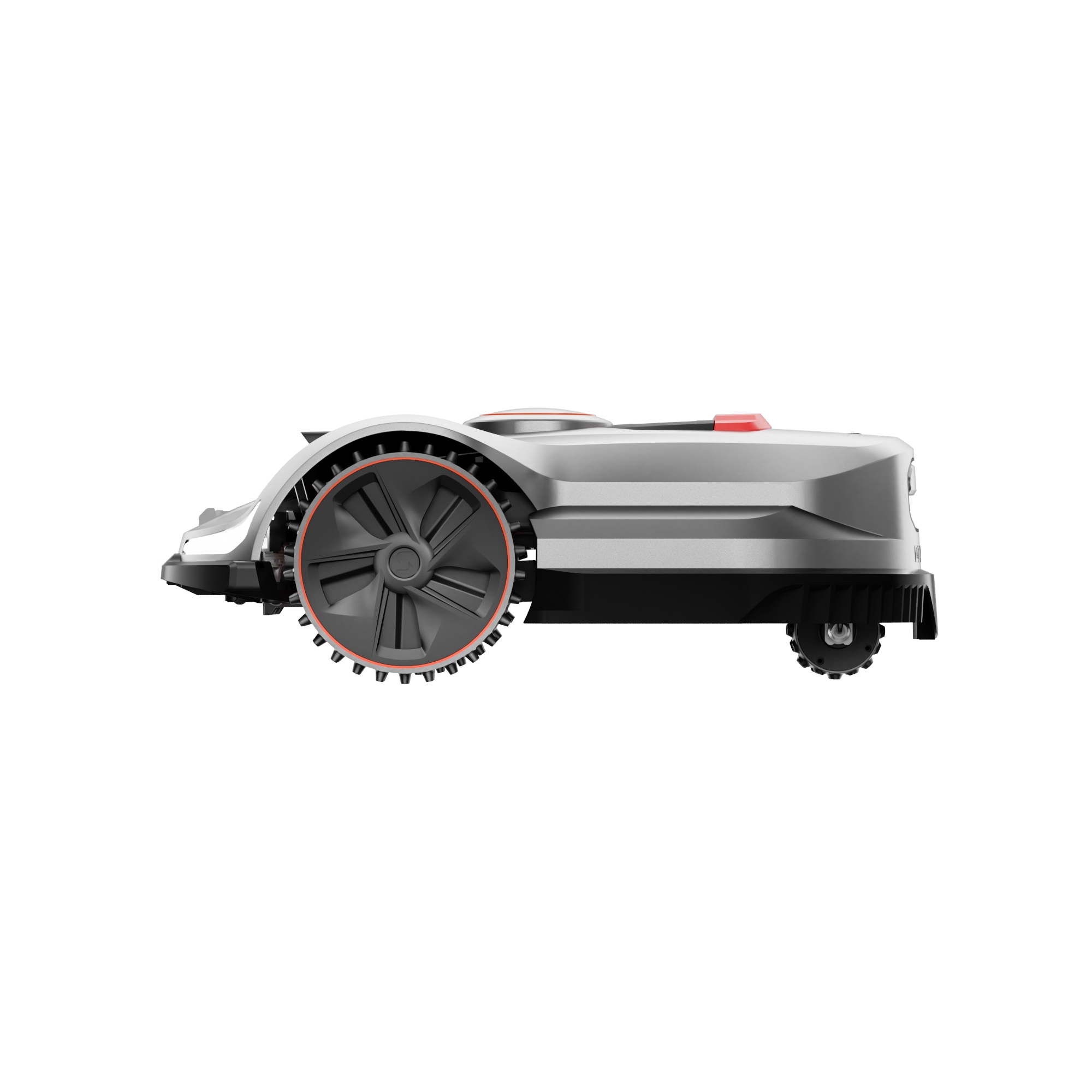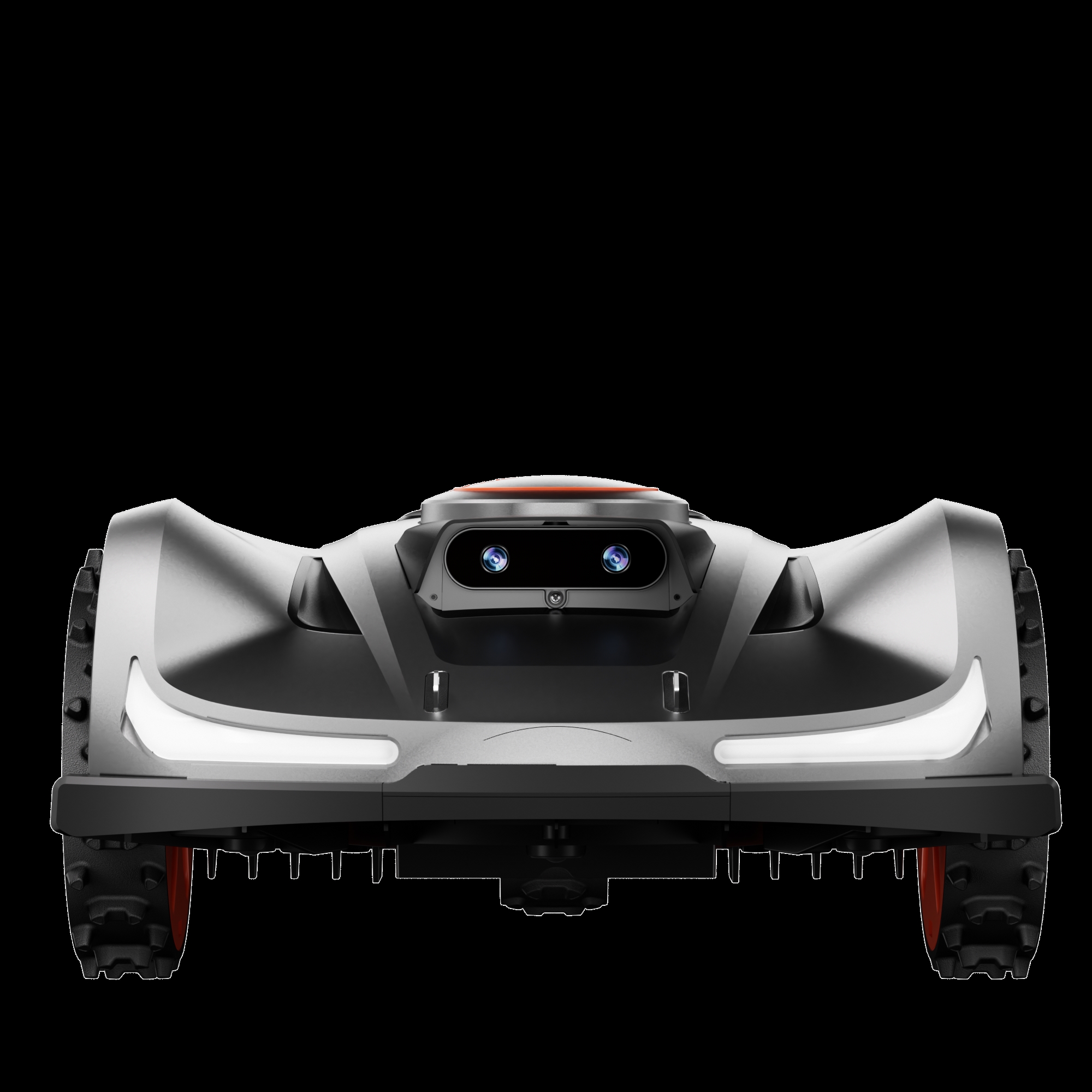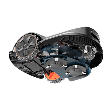Robotplæneklipper uden kantkabel, med AI kameraer og mange unikke funktioner som AWD og et styrende hjul, der tillader kørsel på skråninger op til 35 grader, affjedring på hjul og to knivdiske med en klippebredde på hele 35cm.